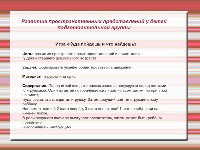 Слайд 8Развитие пространственных представлений у детей подготовительной группы