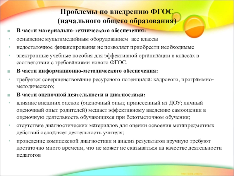 Проблемы по внедрению ФГОС