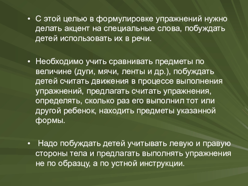Слайд 7С этой целью в формулировке упражнений нужно делать акцент на специальные