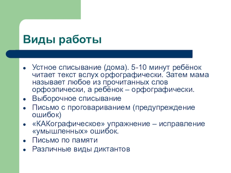 Устное списывание (дома). 5-10 минут ребёнок читает текст вслух орфографически.