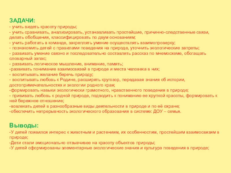 Цели.Формирование системы осознанно – правильных экологических представлений о природе, основ экологической культуры у детей дошкольного возраста.