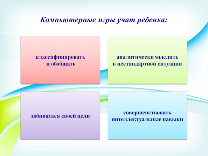 При подборе развивающих игр обращайте внимание на их соответствии возрасту ребенка. Контролируйте, что смотрит ребенок по телевизору, и в какие игры играет, поддерживайте его любознательность.