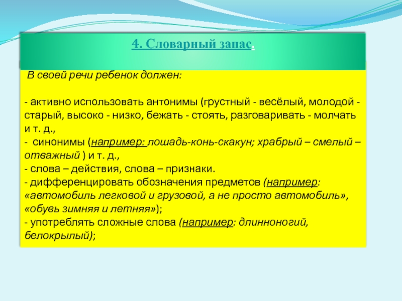 4. Словарный запас.