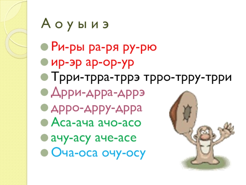 А о у ы и эРи-ры ра-ря ру-рю ир-эр ар-ор-урТрри-трра-тррэ трро-трру-трриДрри-дрра-дррэ дрро-дрру-дрраАса-ача ачо-асо ачу-асу аче-асеОча-оса очу-осу