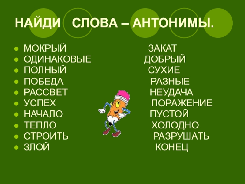 Слайд 4НАЙДИ СЛОВА – АНТОНИМЫ.