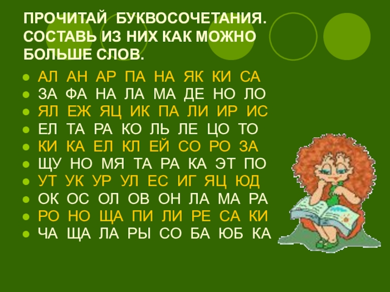 Слайд 3ПРОЧИТАЙ БУКВОСОЧЕТАНИЯ. СОСТАВЬ ИЗ НИХ КАК МОЖНО БОЛЬШЕ СЛОВ.