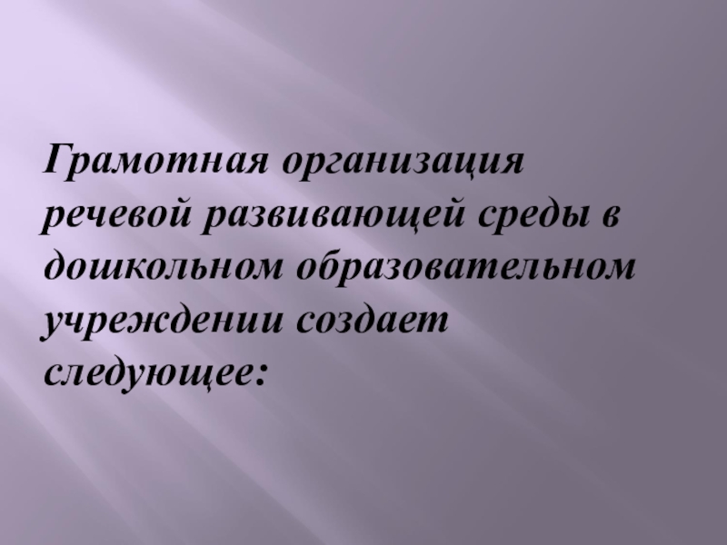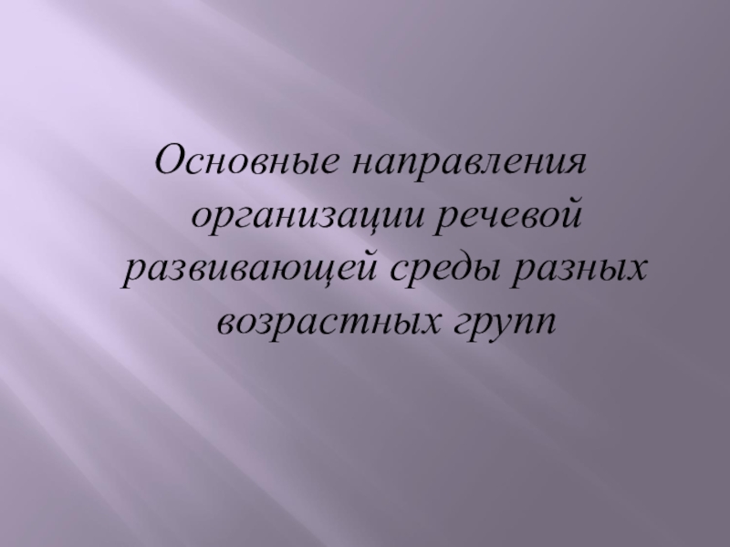 Слайд 1РЕЧЕВАЯ РАЗВИВАЮЩАЯ СРЕДА. ОСНОВНЫЕ НАПРАВЛЕНИЯ ЕЕ ОРГАНИЗАЦИИ.