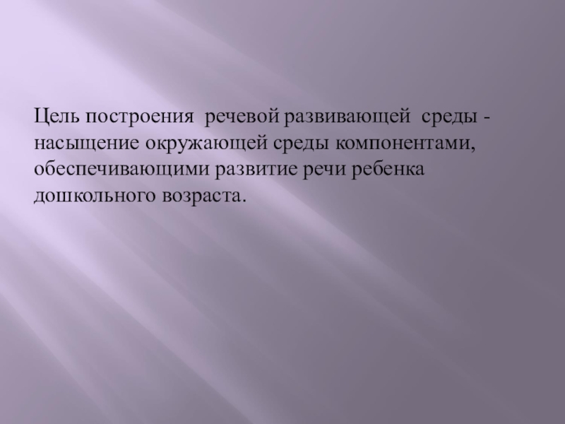 Цель построения речевой развивающей среды -насыщение окружающей среды компонентами, обеспечивающими развитие