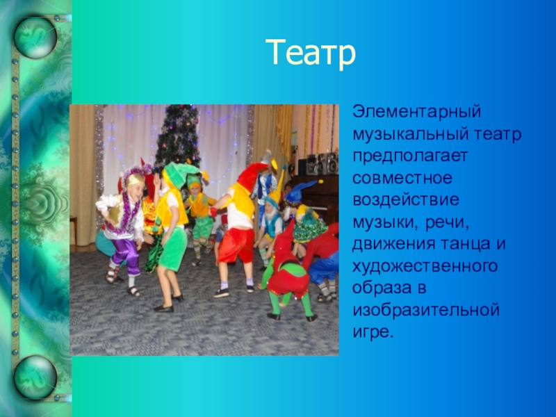 Элементарный музыкальный театр предполагает совместное воздействие музыки, речи, движения танца