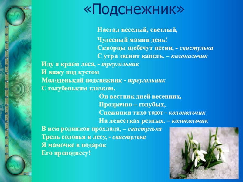 И расцвел подснежник - колокольчик