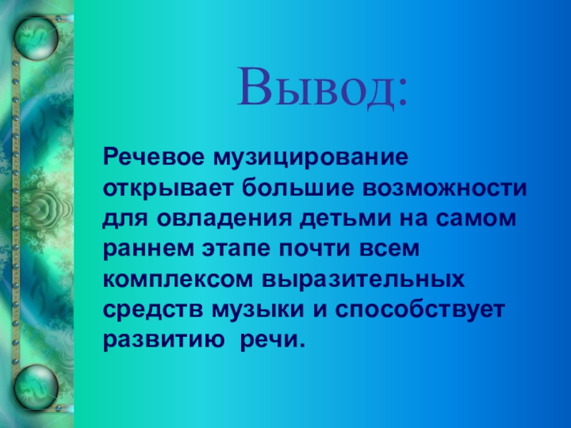раннем этапе почти всем комплексом выразительных средств музыки и способствует развитию речи.
