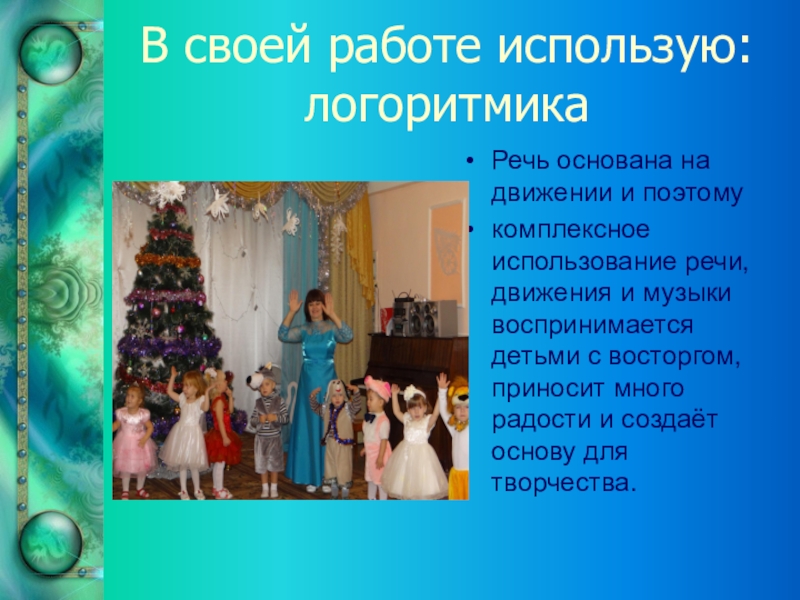 Слайд 9В своей работе использую: логоритмика