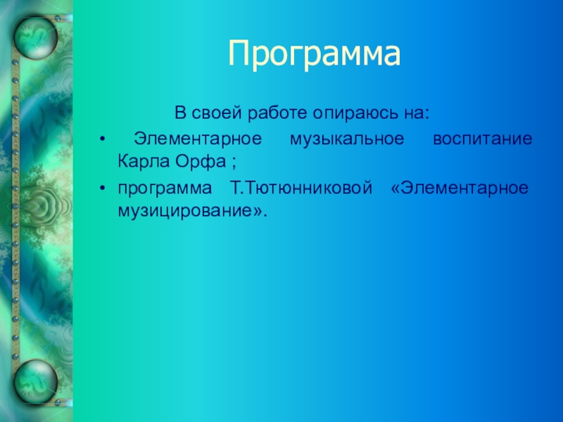 программа Т.Тютюнниковой «Элементарное музицирование».