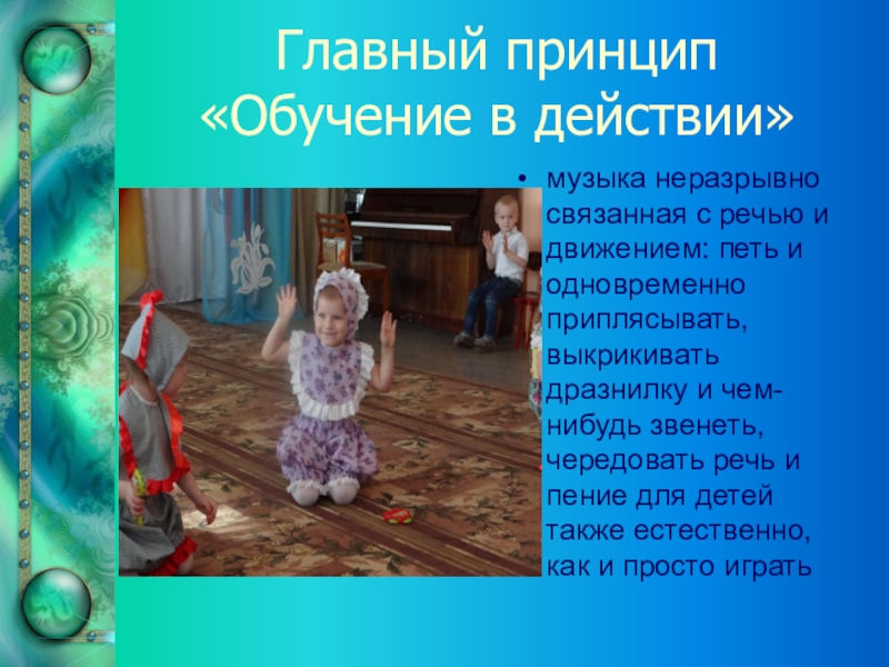 Слайд 8Главный принцип «Обучение в действии»