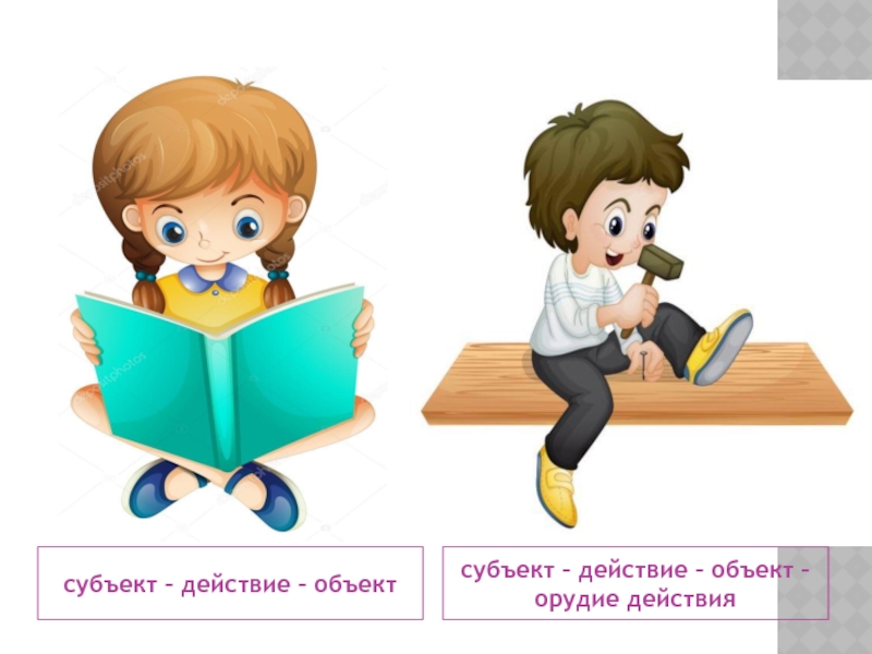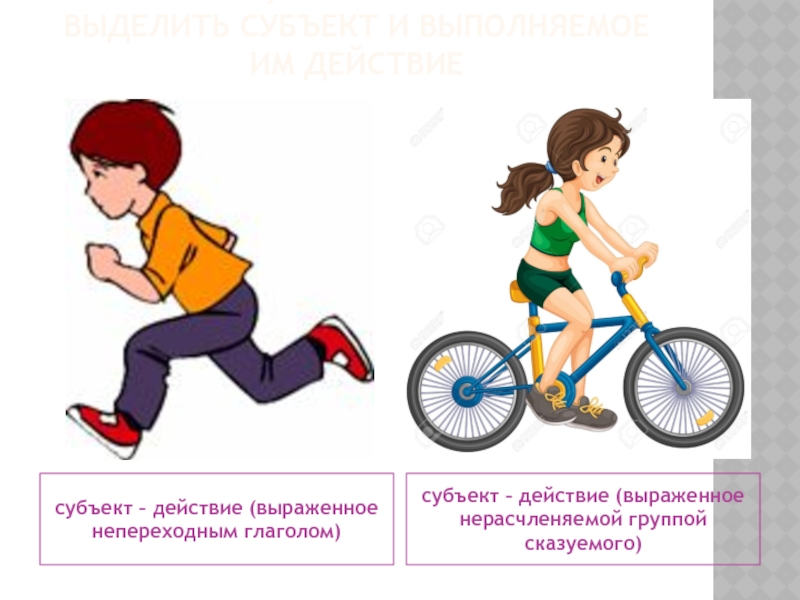 Слайд 16Картинки, на которых можно выделить субъект и выполняемое им действие