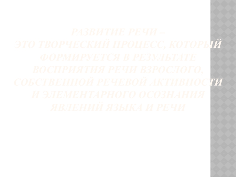 речи взрослого, собственной речевой активности и элементарного осознания явлений языка и речи