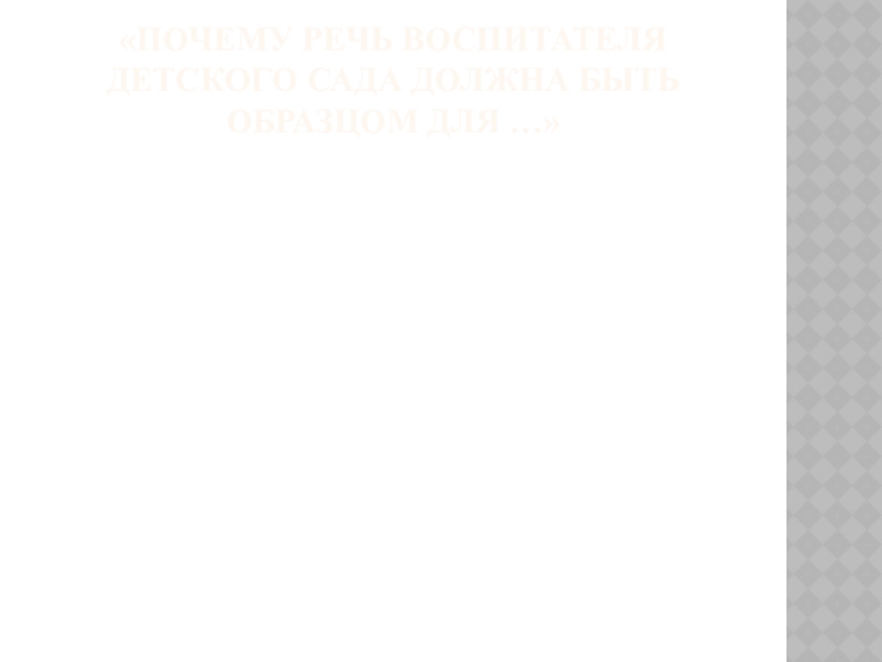 Слайд 9«Почему речь воспитателя детского сада должна быть образцом для …»