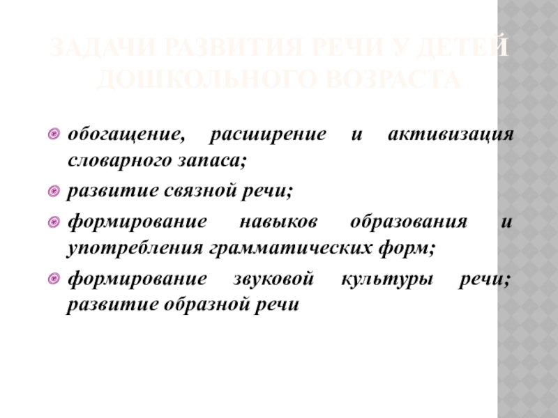 Слайд 10Задачи развития речи у детей дошкольного возраста
