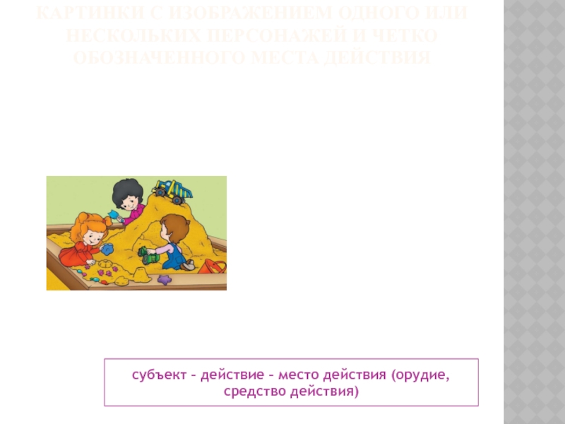 Слайд 18Картинки с изображением одного или нескольких персонажей и четко обозначенного места