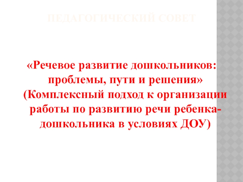 (Комплексный подход к организации работы по развитию речи ребенка-дошкольника в условиях ДОУ)