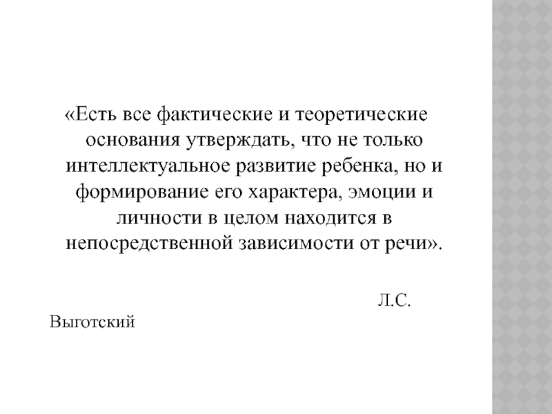 развитие ребенка, но и формирование его характера, эмоции и личности в целом находится в непосредственной зависимости от речи».