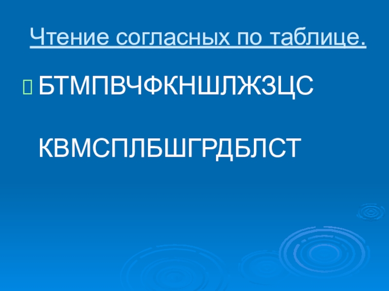 Чтение согласных по таблице.БТМПВЧФКНШЛЖЗЦС КВМСПЛБШГРДБЛСТ
