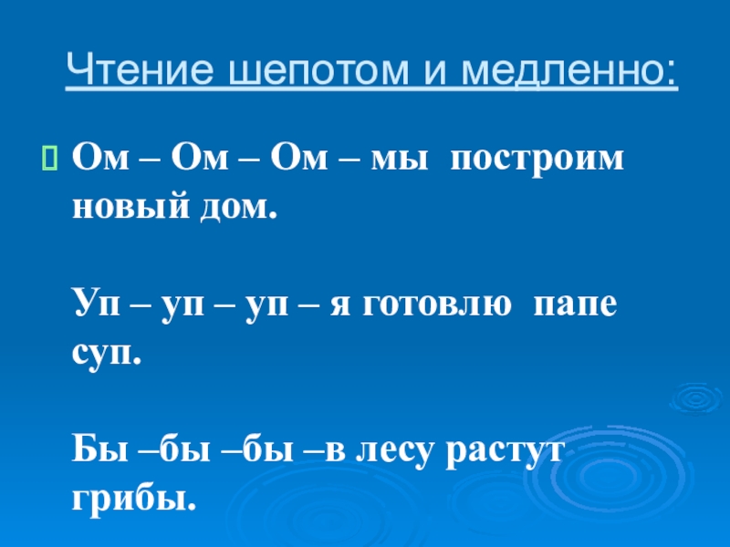 Чтение шепотом и медленно:Ом – Ом – Ом – мы построим новый дом.  Уп – уп