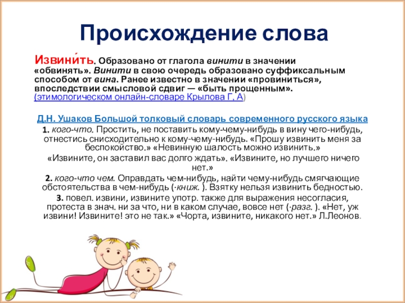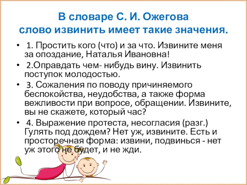 Слайд 4В словаре С. И. Ожегова слово извинить имеет такие значения.