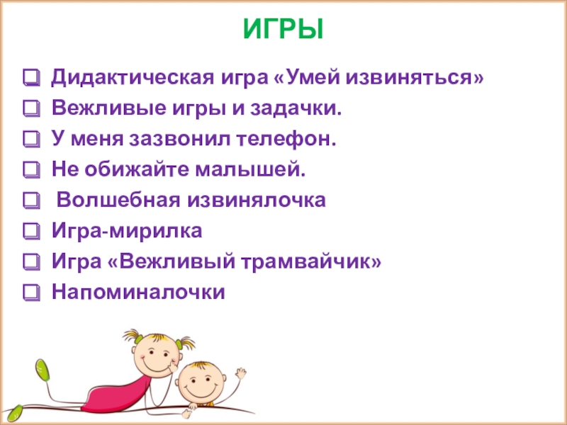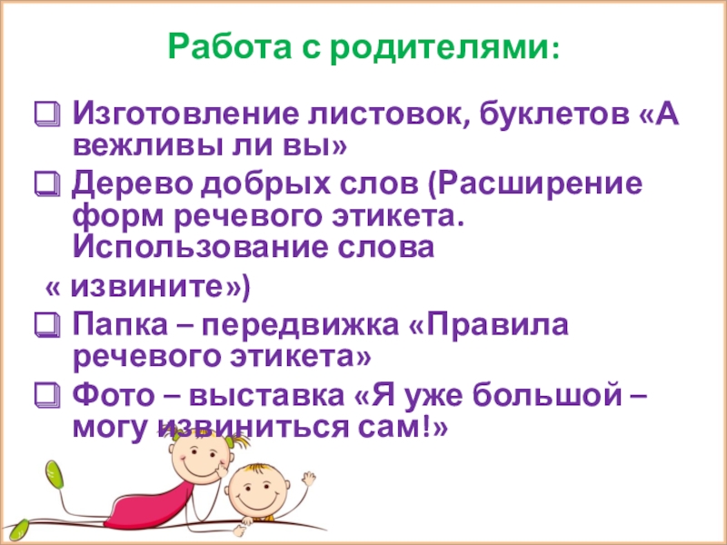 Речевому этикету начинают обучать детей с раннего детства. Их учат говорить слова благодарности, приветствия, извинения («простите, извините»).