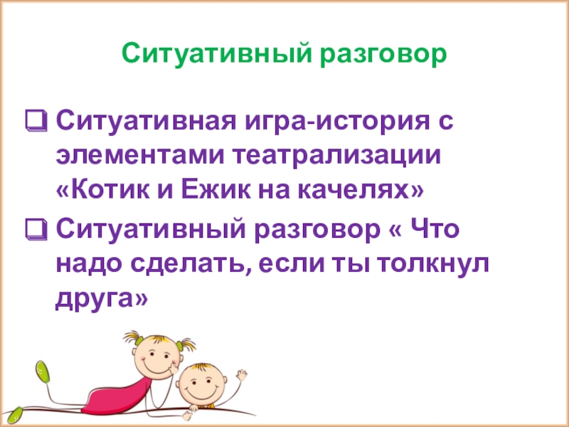 Ситуативная игра-история с элементами театрализации «Котик и Ежик на качелях»