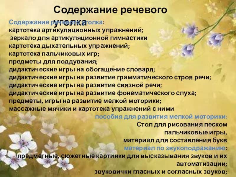 Речевой центр старшей дошкольной группы