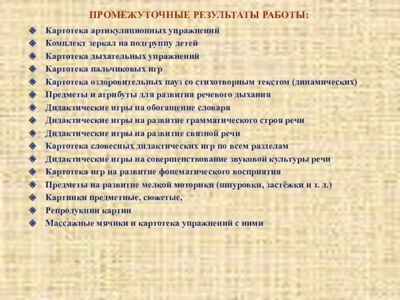 ПРОМЕЖУТОЧНЫЕ РЕЗУЛЬТАТЫ РАБОТЫ: