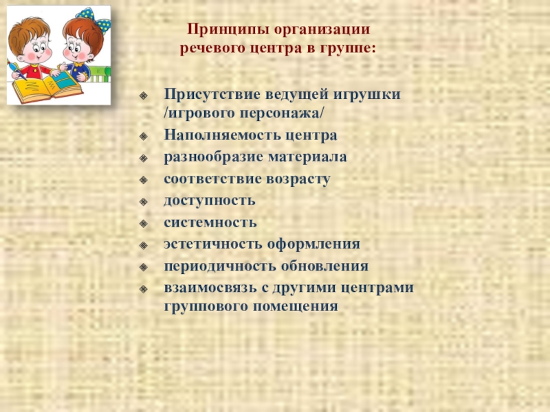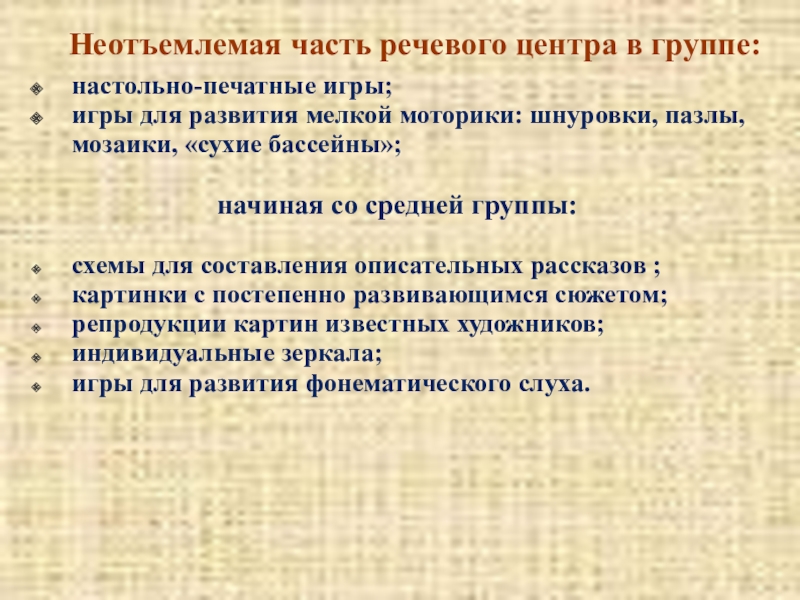 Неотъемлемая часть речевого центра в группе: