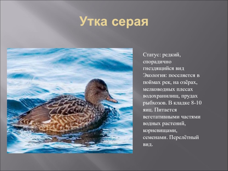 Слайд 11Утка серая