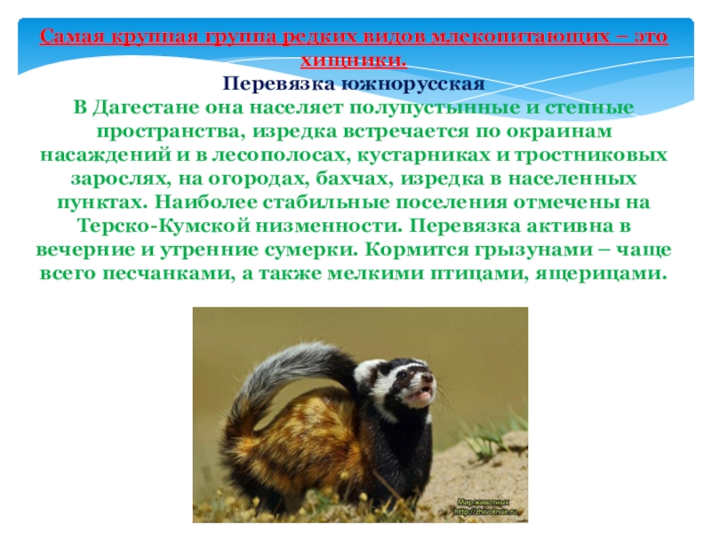 Слайд 3Самая крупная группа редких видов млекопитающих – это хищники.