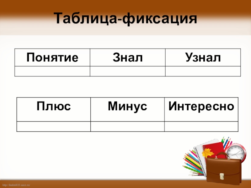 Слайд 18Таблица-фиксация