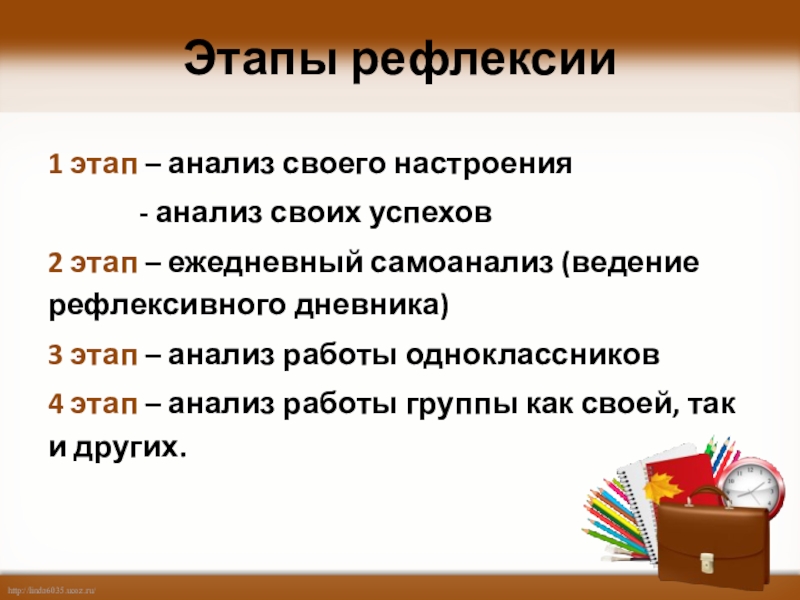 Слайд 4Этапы рефлексии