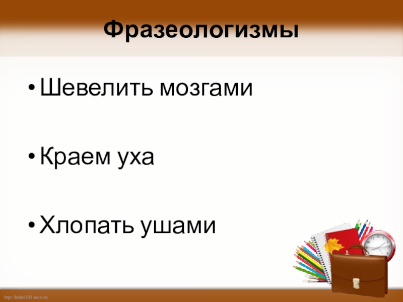 ФразеологизмыШевелить мозгамиКраем ухаХлопать ушами