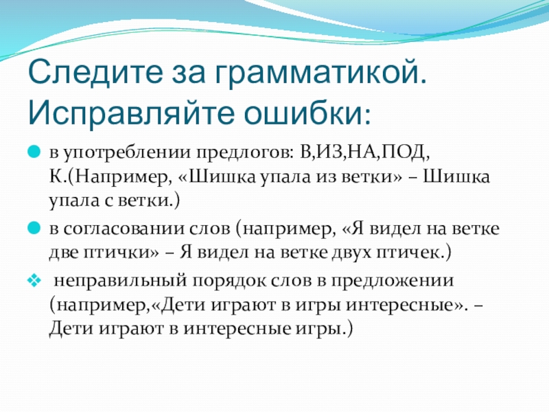 Слайд 19Следите за грамматикой. Исправляйте ошибки: