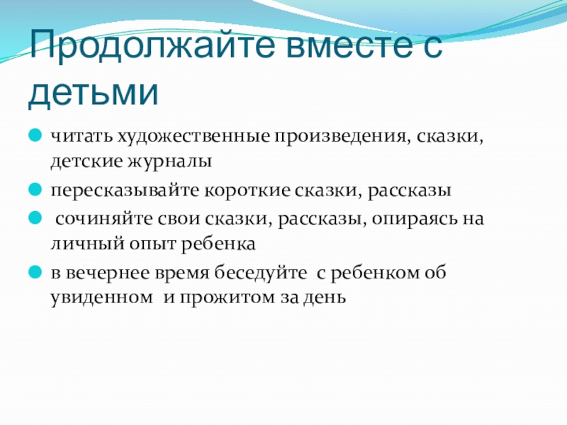 сочиняйте свои сказки, рассказы, опираясь на личный опыт ребенка