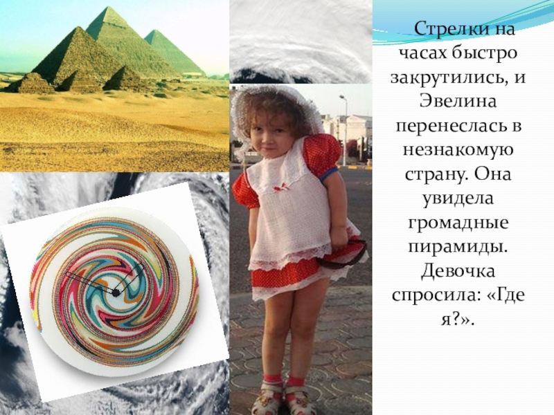 в незнакомую страну. Она увидела громадные пирамиды. Девочка спросила: «Где я?».