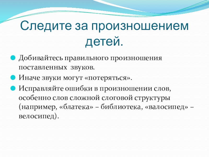 ошибки в произношении слов, особенно слов сложной слоговой структуры (например, «блатека» – библиотека, «валосипед» –велосипед).