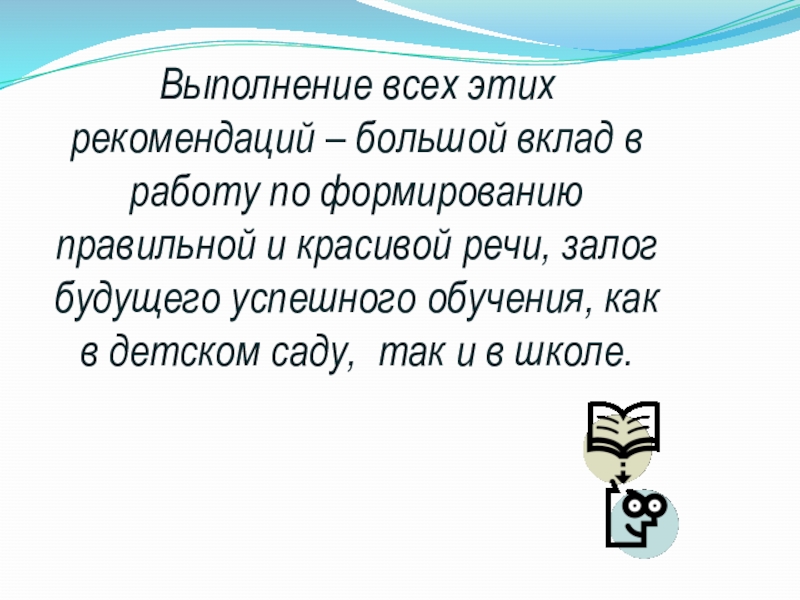 Слайд 22Выполнение всех этих рекомендаций – большой вклад в работу по формированию