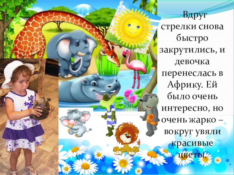 в Африку. Ей было очень интересно, но очень жарко – вокруг увяли красивые цветы.