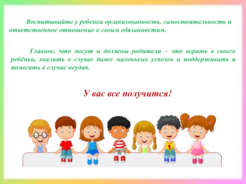 Главное, что могут и должны родители – это верить в своего ребёнка, хвалить в случае даже маленьких успехов и поддерживать и помогать в случае неудач.