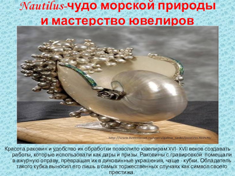 Слайд 13Nautilus-чудо морской природы и мастерство ювелиров