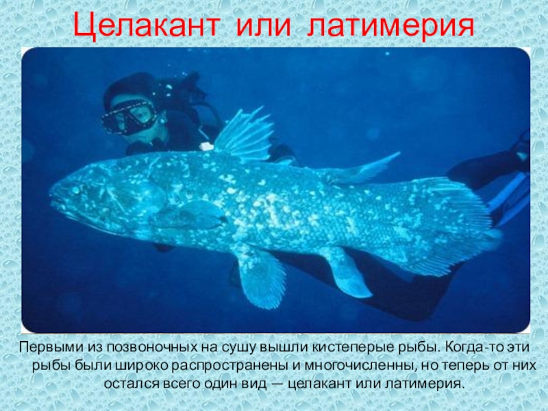 были широко распространены и многочисленны, но теперь от них остался всего один вид — целакант или латимерия.