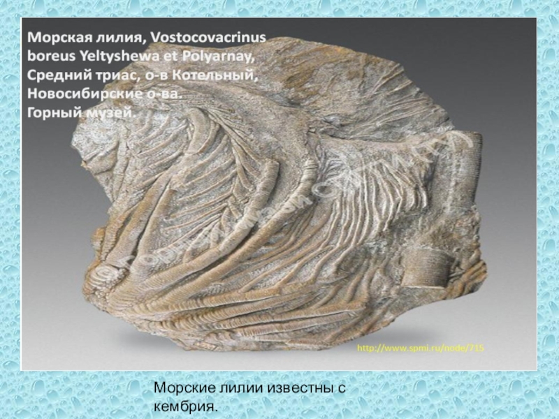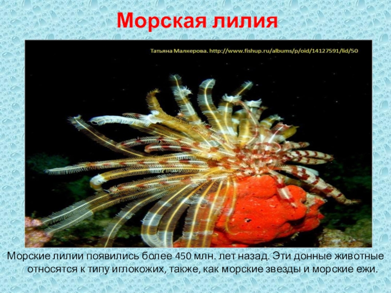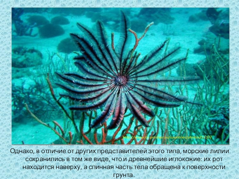 Слайд 4Однако, в отличие от других представителей этого типа, морские лилии сохранились в том же виде,