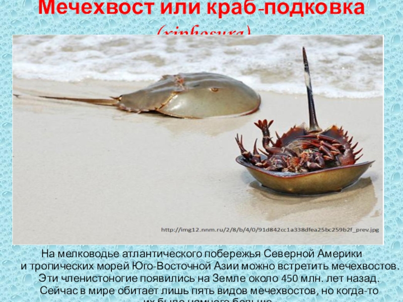 Слайд 14Мечехвост или краб-подковка (xiphosura)