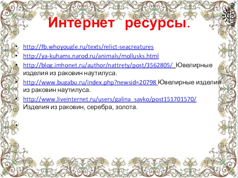 http://www.liveinternet.ru/users/galina_savko/post151701570/ Изделия из раковин, серебра, золота.